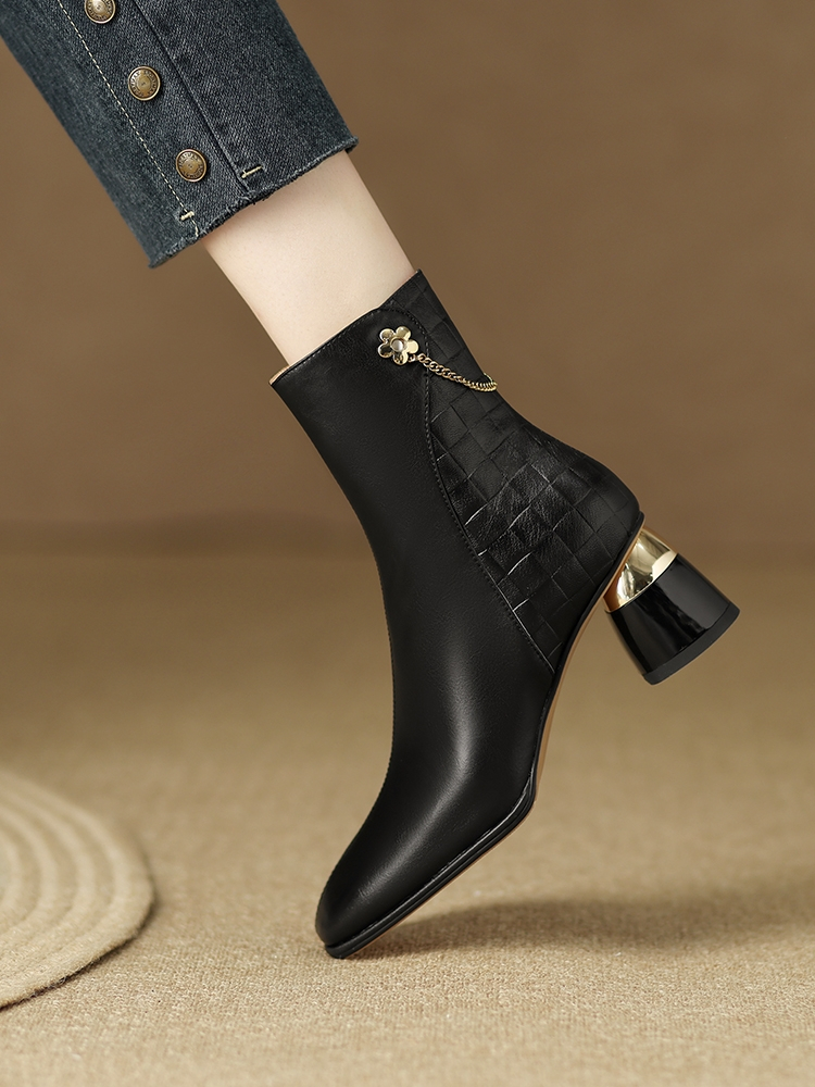 女靴子靴子韩版潮时尚保暖防滑绒面短靴圆头粗跟