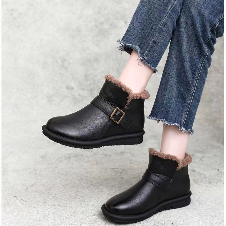 女靴子靴子韩版潮时尚保暖防滑绒面短靴圆头粗跟