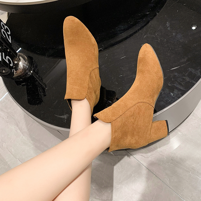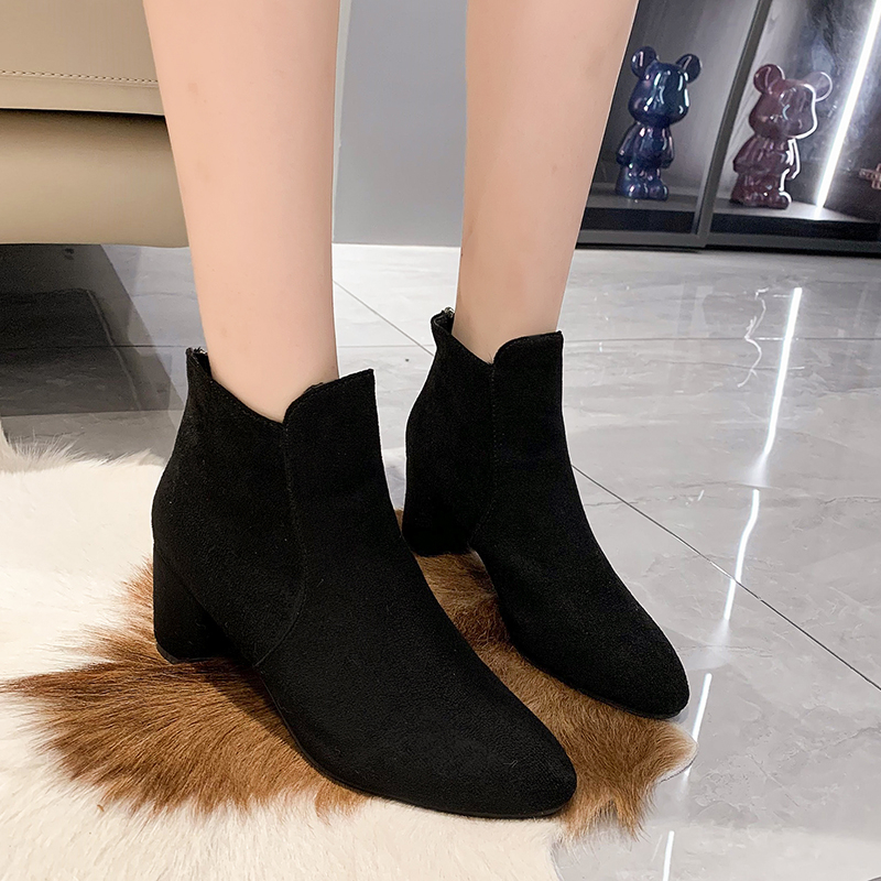 女靴子靴子韩版潮时尚保暖防滑绒面短靴圆头粗跟