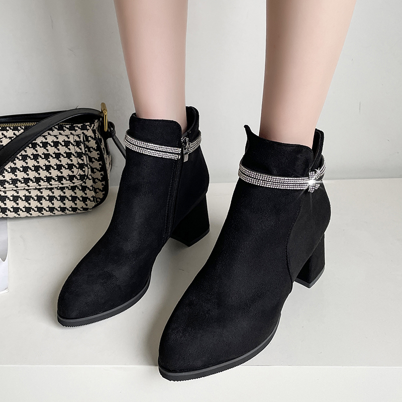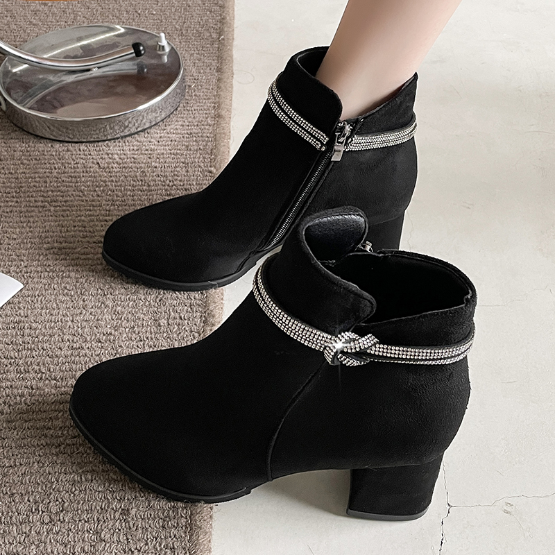 女靴子靴子韩版潮时尚保暖防滑短靴圆头粗跟
