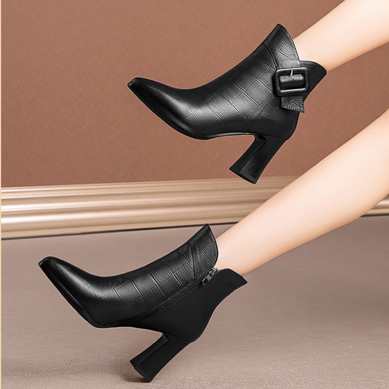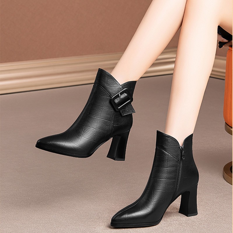 女靴子靴子韩版潮时尚保暖防滑短靴圆头粗跟