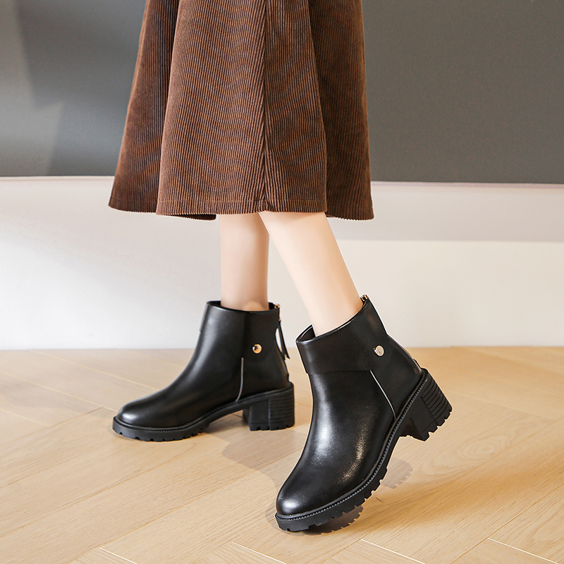 女靴子靴子韩版潮时尚保暖防滑圆头粗跟