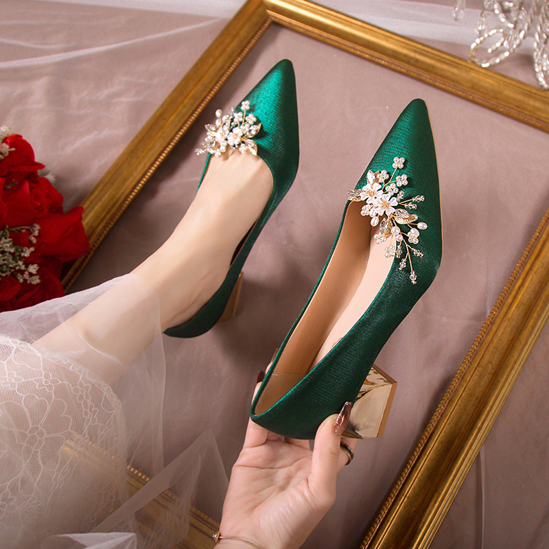 2022春夏季新款单鞋女鞋子低帮鞋韩版时尚学生民族风浅口尖头粗跟