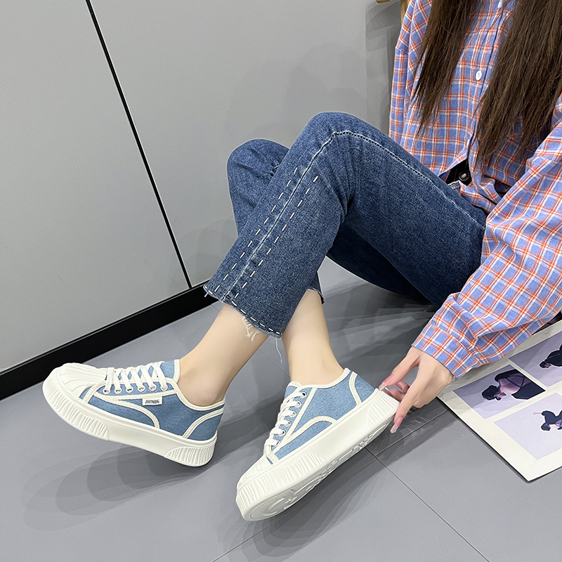 2022春夏季新款单鞋女鞋子低帮鞋韩版时尚学生网布圆头松糕鞋