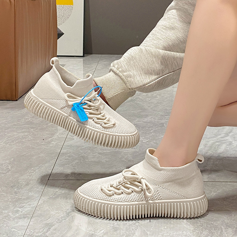 2022春夏季新款单鞋女鞋子低帮鞋韩版时尚学生网布圆头松糕鞋