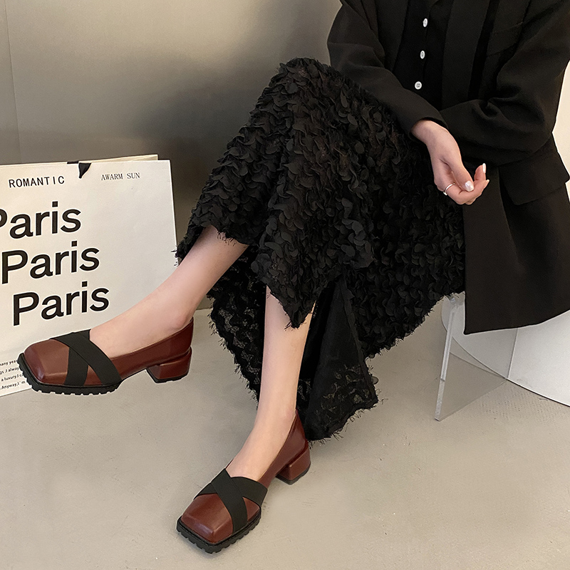 2022春夏季新款单鞋女鞋子低帮鞋韩版时尚学生圆头粗跟