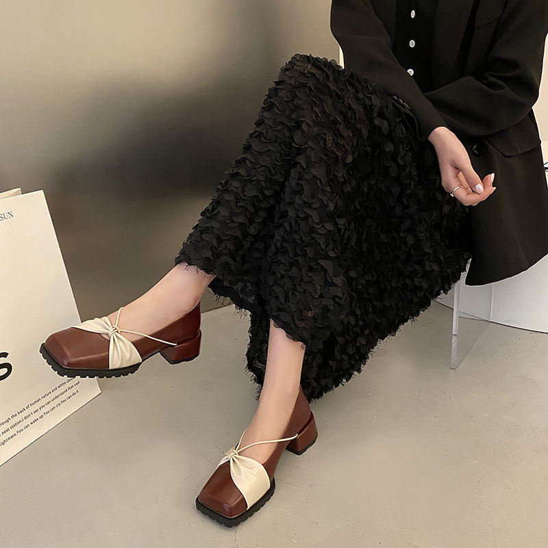 2022春夏季新款单鞋女鞋子低帮鞋韩版时尚学生圆头粗跟