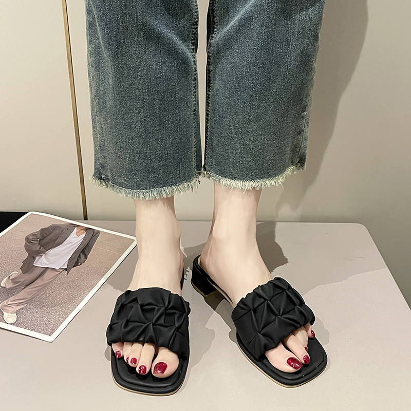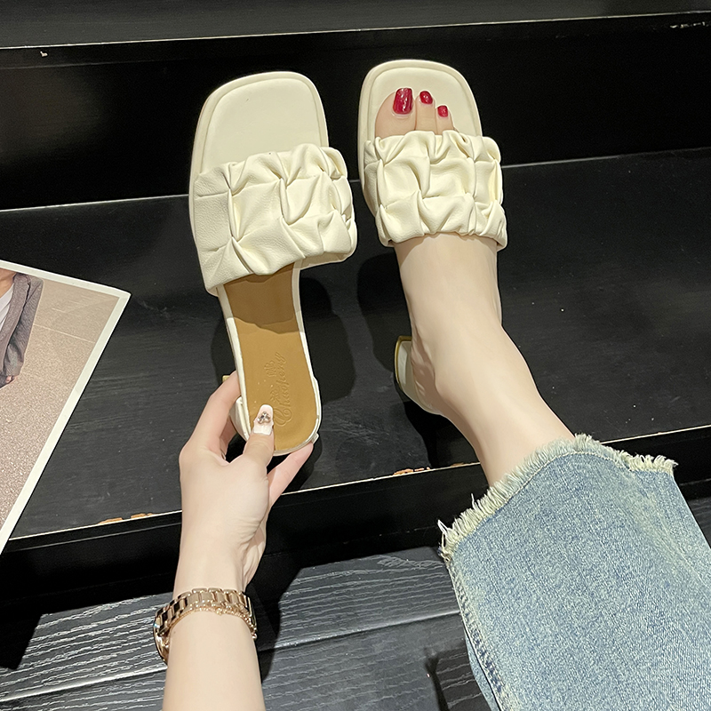 2022夏季凉拖鞋休闲鞋女鞋子拖鞋欧美英伦时尚粗跟
