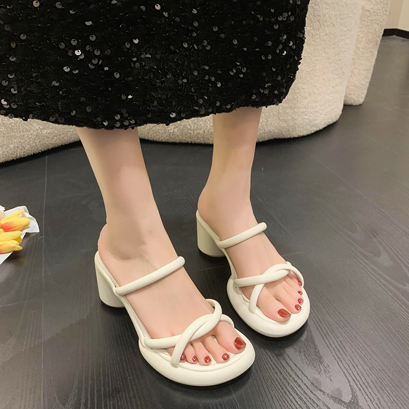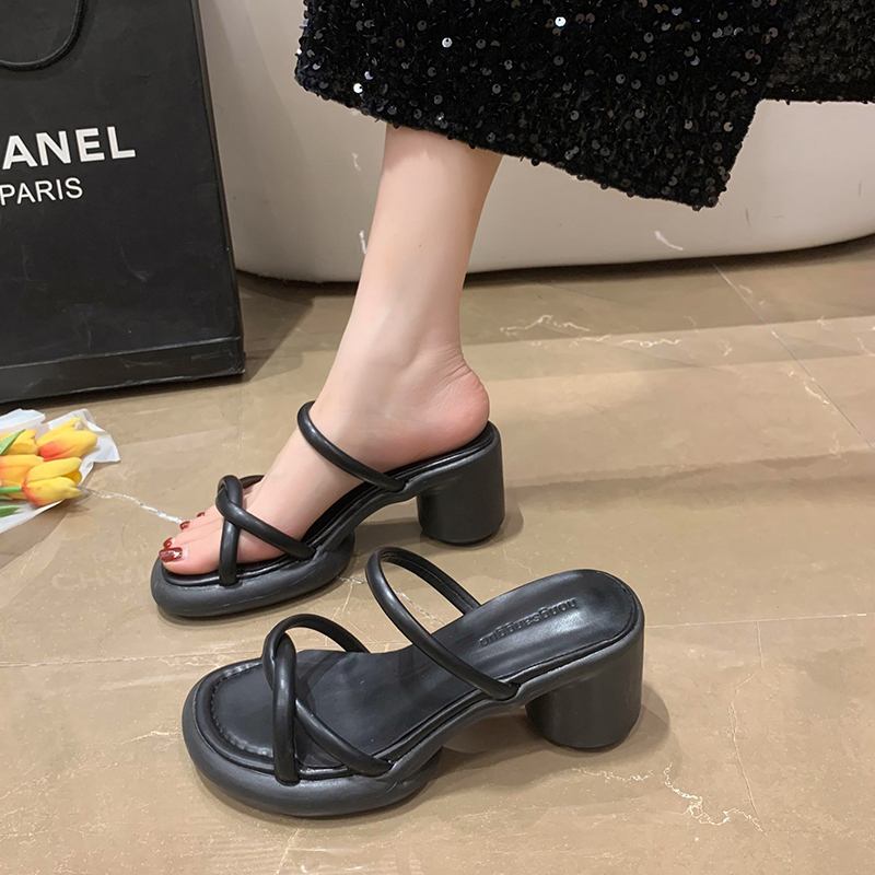 2022夏季凉拖鞋休闲鞋女鞋子拖鞋欧美英伦时尚粗跟