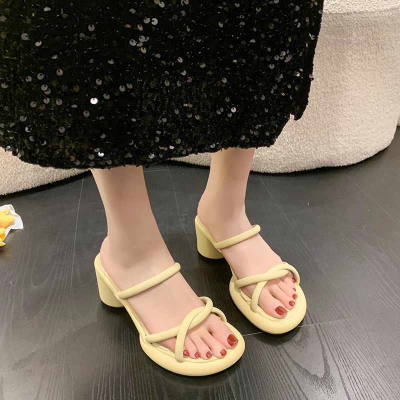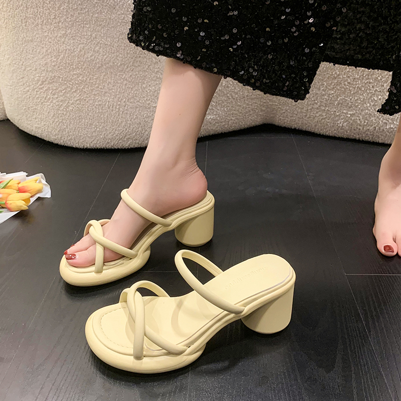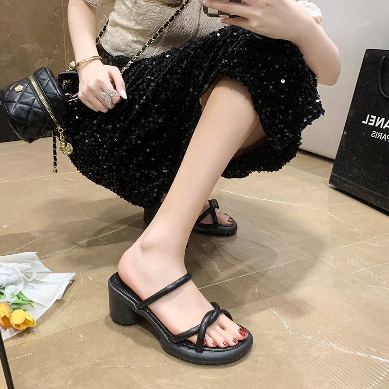 2022夏季凉拖鞋休闲鞋女鞋子拖鞋欧美英伦时尚粗跟