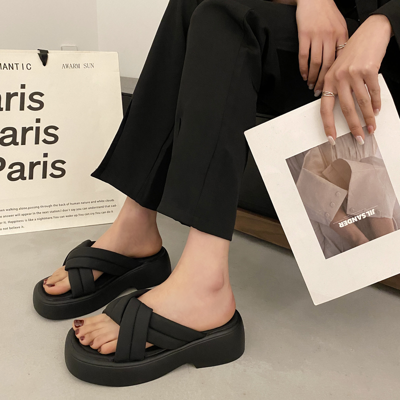 2022夏季凉拖鞋休闲鞋女鞋子拖鞋欧美英伦时尚松糕鞋