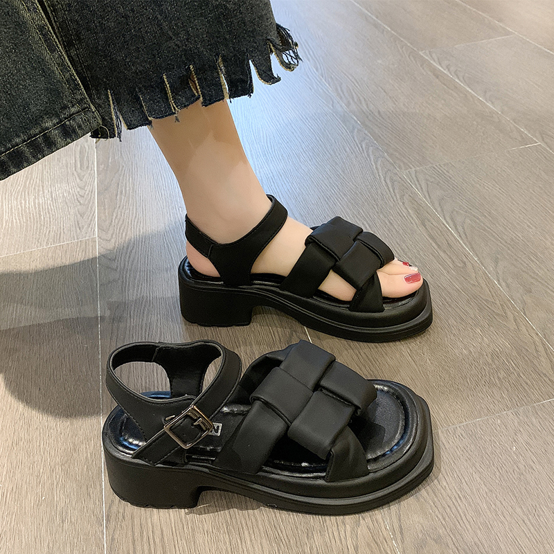 2022夏季凉鞋休闲鞋女鞋子凉鞋韩版时尚潮沙滩鞋露趾粗跟