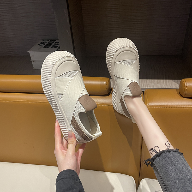 2022春夏季新款单鞋女鞋子低帮鞋韩版时尚学生网布圆头松糕鞋