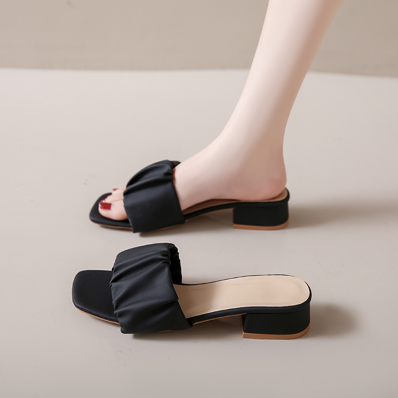 2022夏季凉拖鞋休闲鞋女鞋子拖鞋欧美英伦时尚粗跟