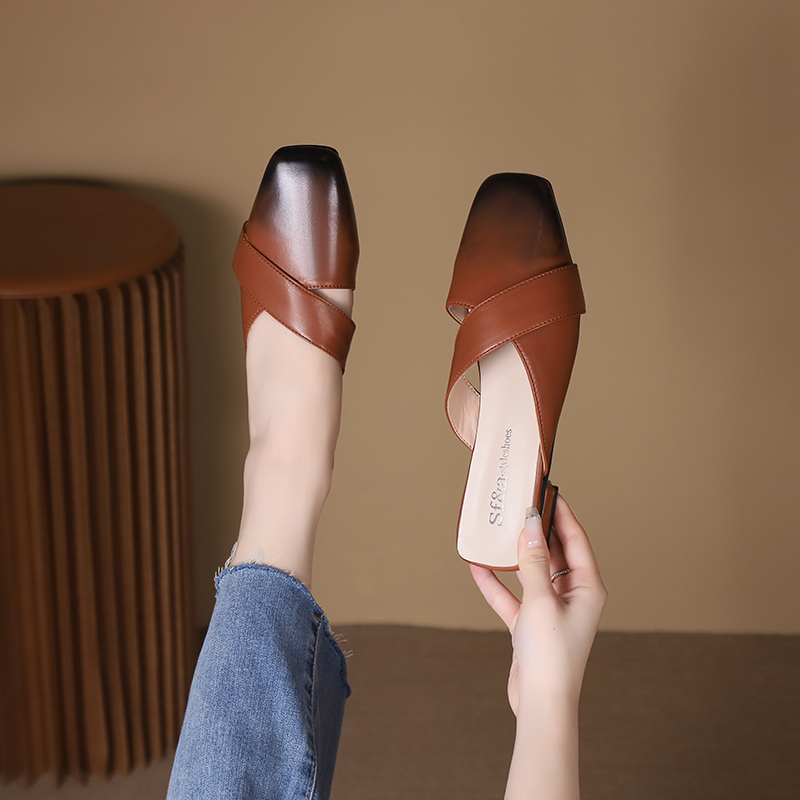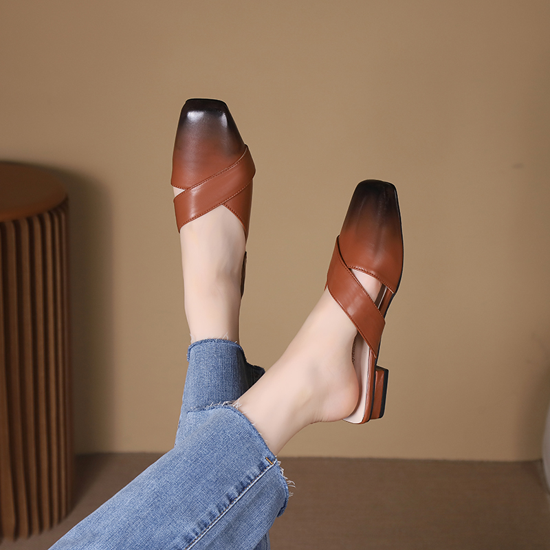 2022夏季凉拖鞋休闲鞋女鞋子拖鞋欧美英伦时尚粗跟