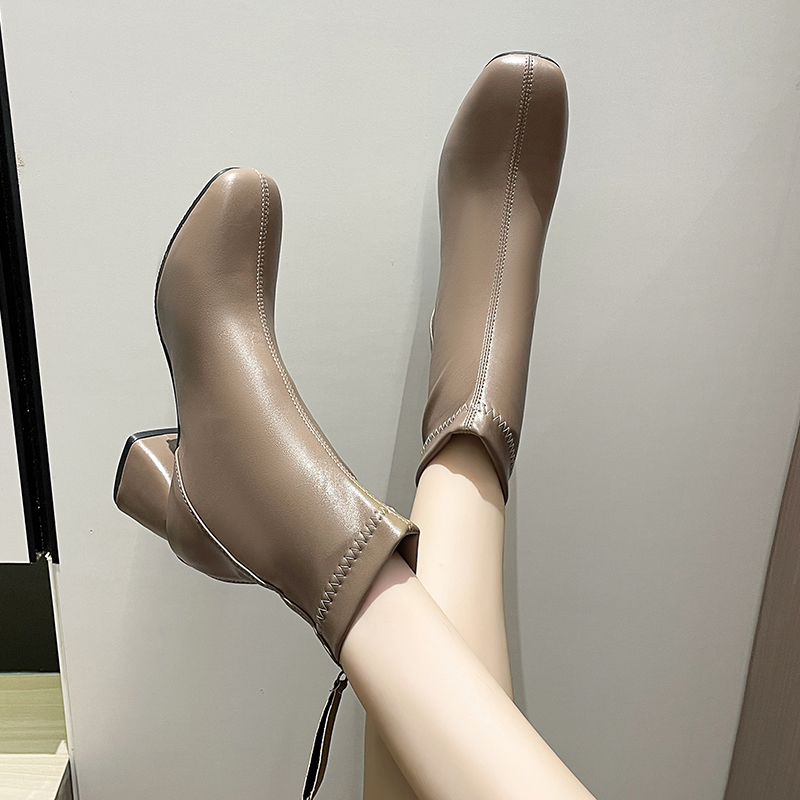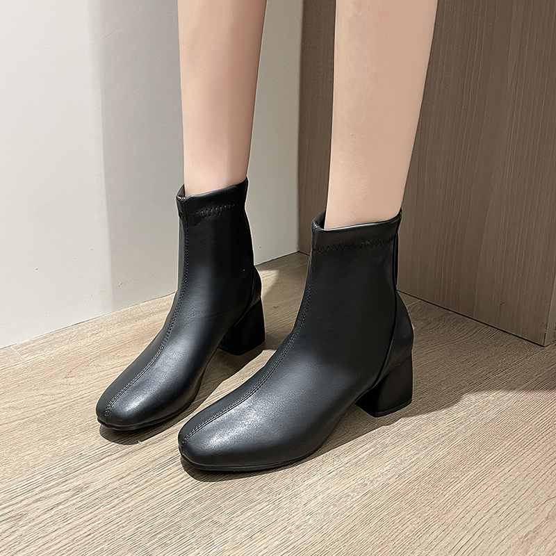 女靴子靴子韩版潮时尚保暖防滑短靴圆头粗跟