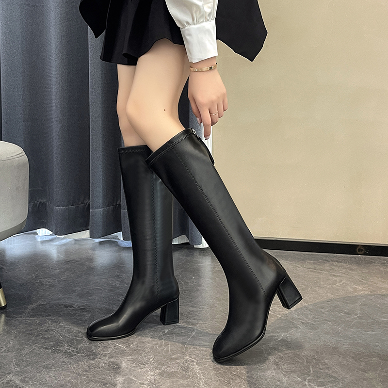 女靴子靴子韩版潮时尚保暖防滑长靴圆头粗跟
