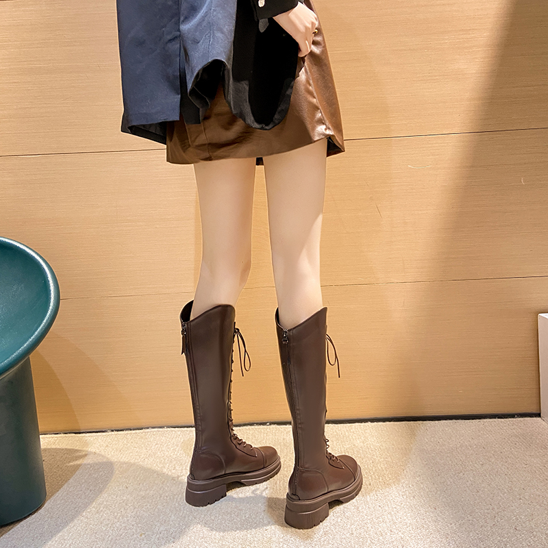 女靴子靴子韩版潮时尚保暖防滑长靴圆头粗跟