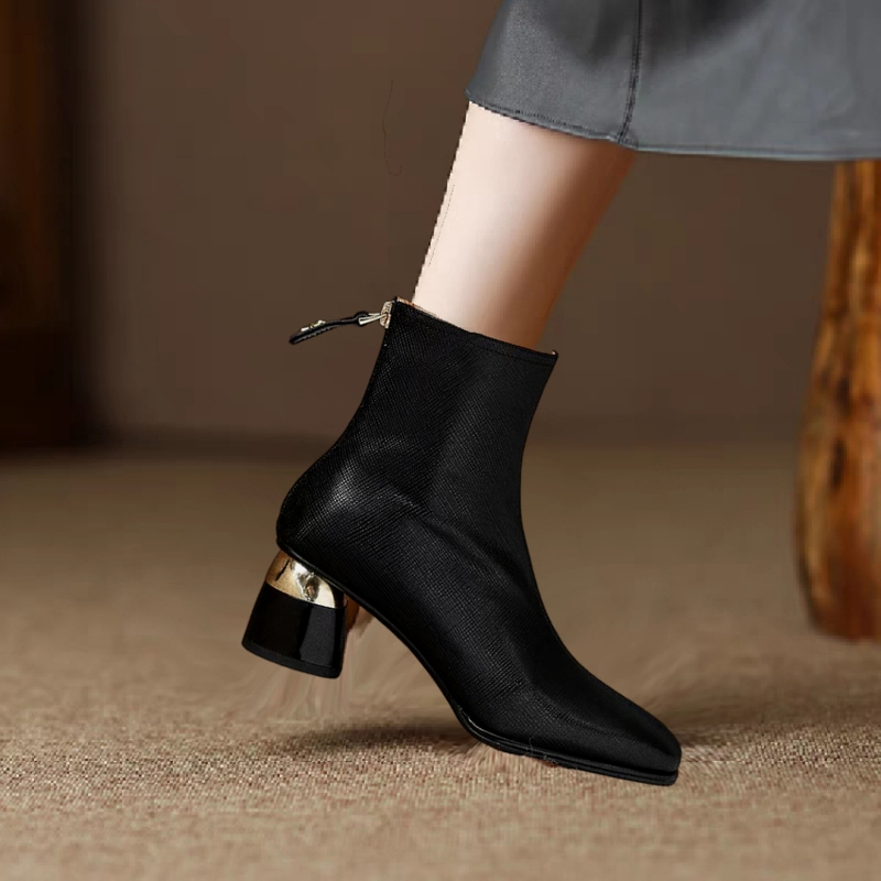 女靴子靴子韩版潮时尚保暖防滑短靴尖头粗跟