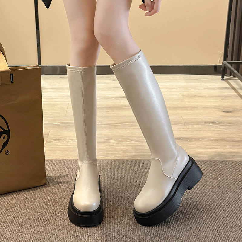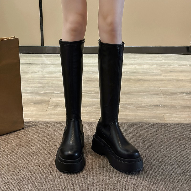 女靴子靴子韩版潮时尚保暖防滑长靴圆头粗跟
