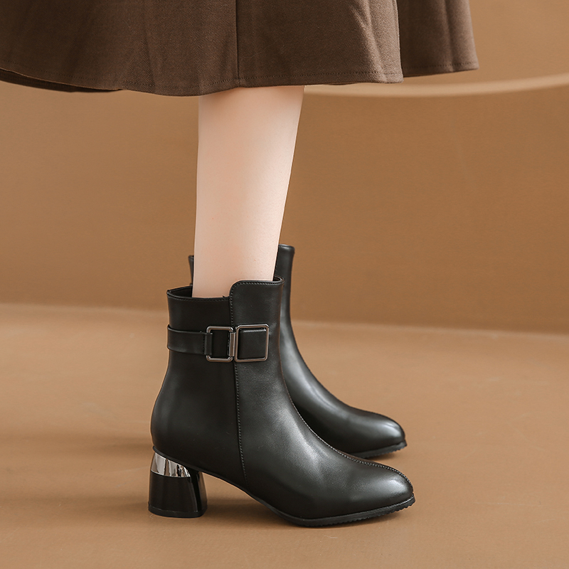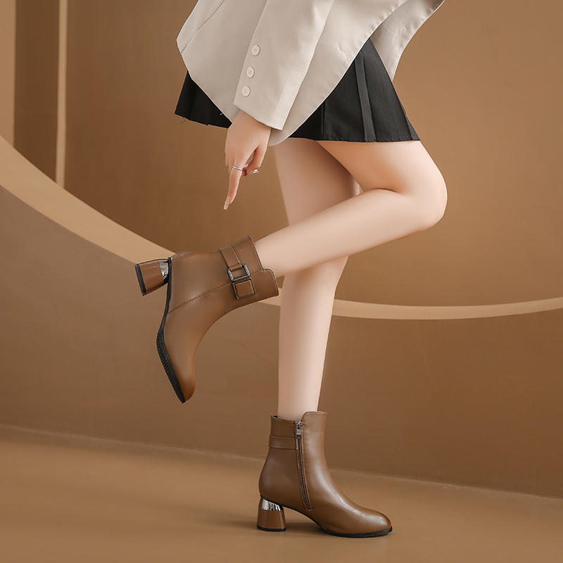 女靴子靴子韩版潮时尚保暖防滑短靴圆头粗跟