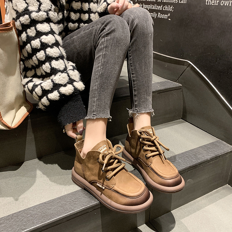 女靴子靴子韩版潮时尚保暖防滑短靴圆头粗跟