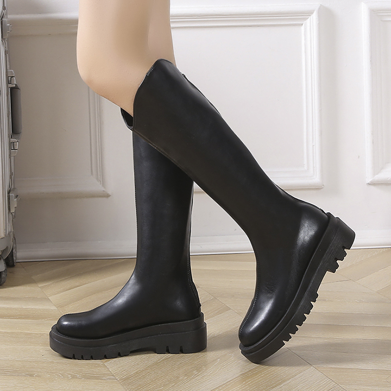女靴子靴子韩版潮时尚保暖防滑长靴圆头粗跟