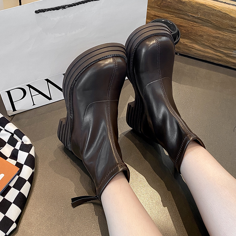 女靴子靴子韩版潮时尚保暖防滑短靴圆头粗跟
