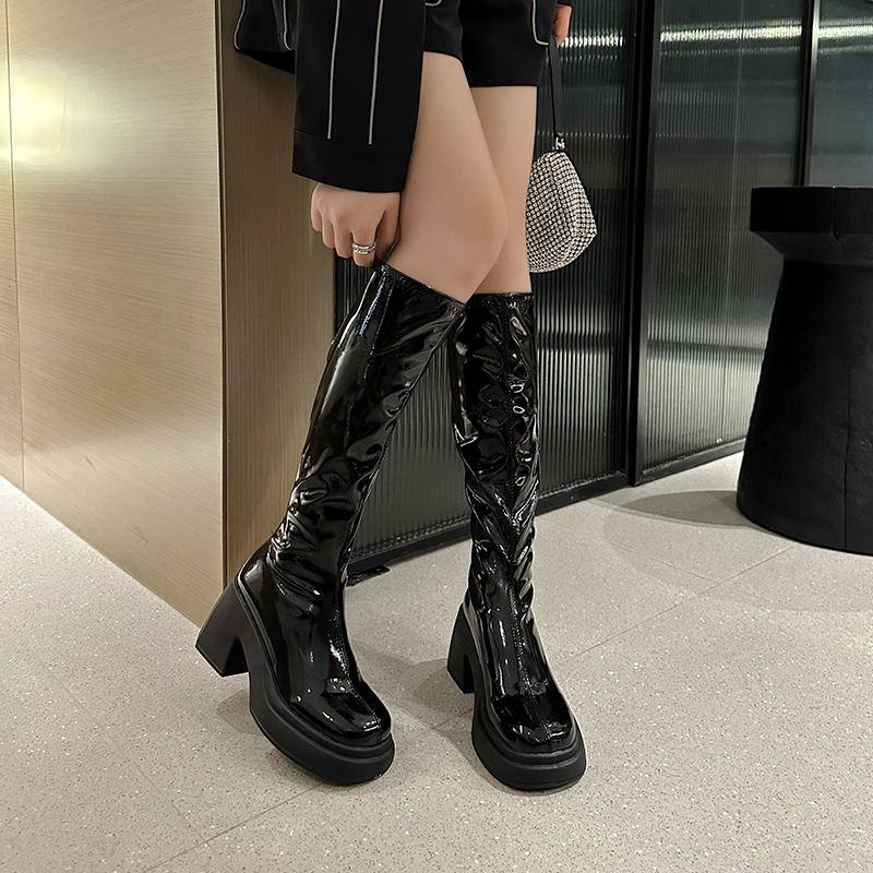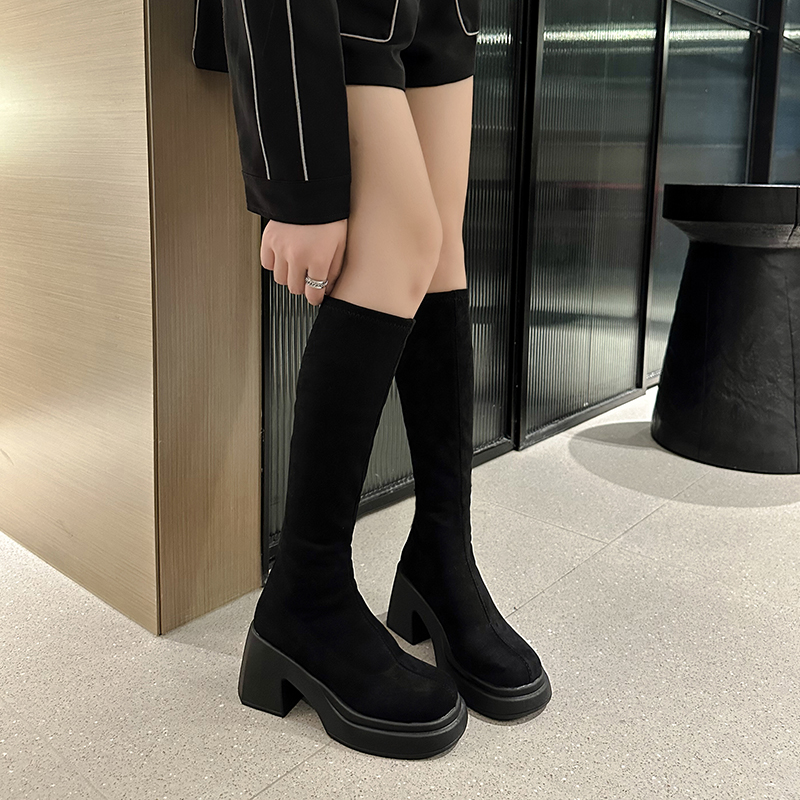 女靴子靴子韩版潮时尚保暖防滑长靴圆头粗跟