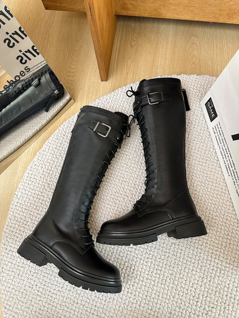 女靴子靴子韩版潮时尚保暖防滑高筒靴圆头粗跟