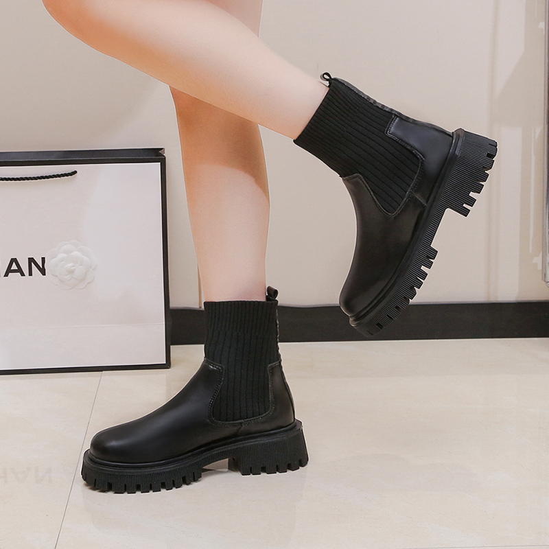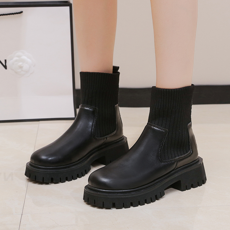 女靴子靴子韩版潮时尚保暖防滑短靴圆头粗跟