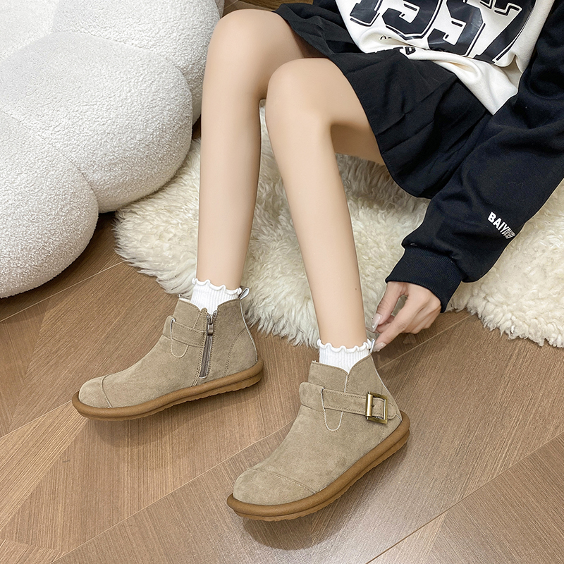 女靴子靴子韩版潮时尚保暖防滑绒面短靴圆头