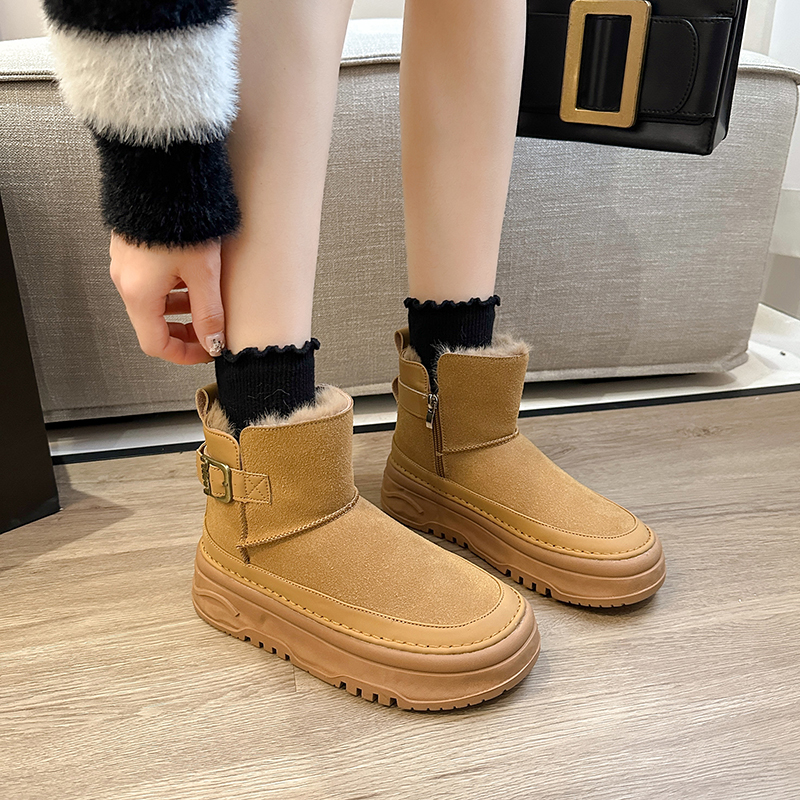 女靴子靴子韩版潮时尚保暖防滑绒面短靴圆头