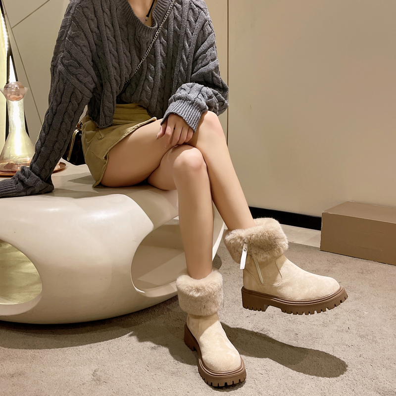 女靴子靴子韩版潮时尚保暖防滑绒面短靴圆头