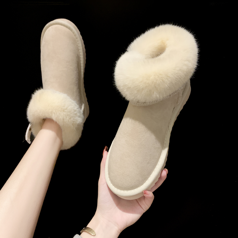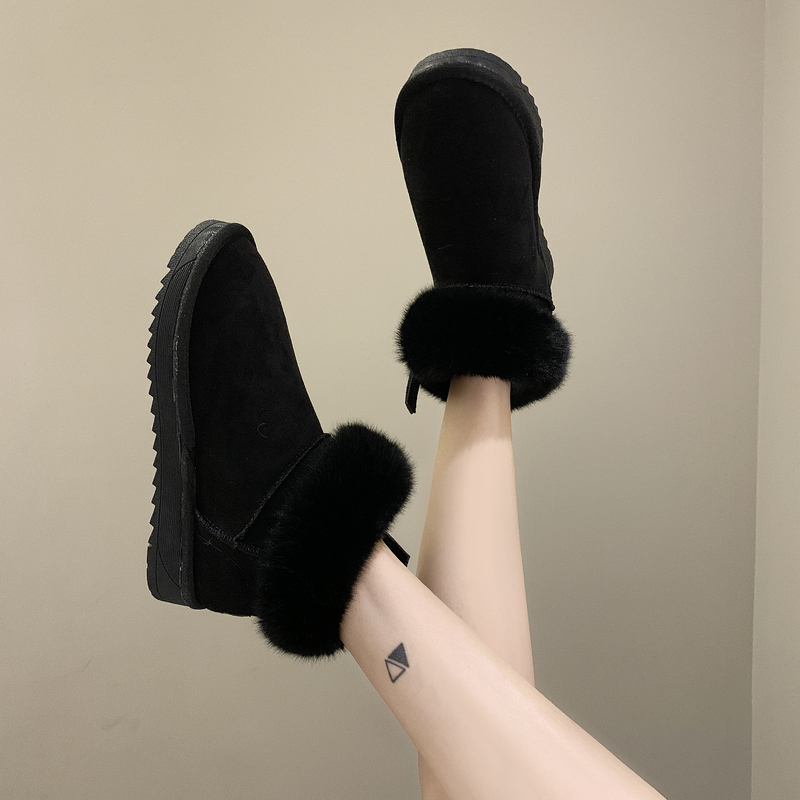 女靴子靴子韩版潮时尚保暖防滑绒面短靴圆头