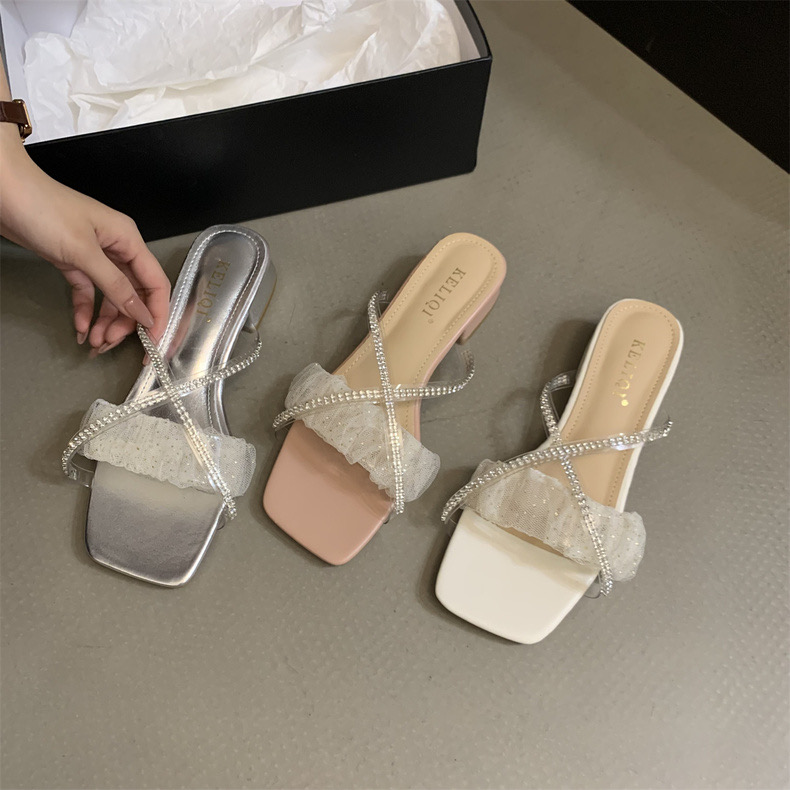 2022夏季凉拖鞋休闲鞋女鞋子拖鞋欧美英伦时尚粗跟