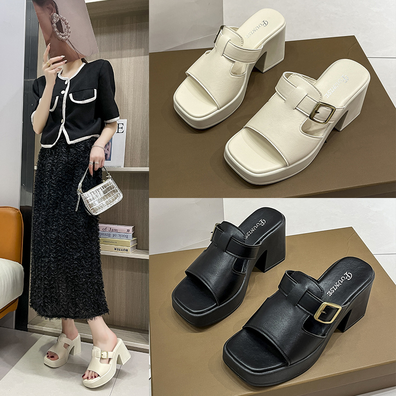 2022夏季凉拖鞋休闲鞋女鞋子拖鞋欧美英伦时尚粗跟