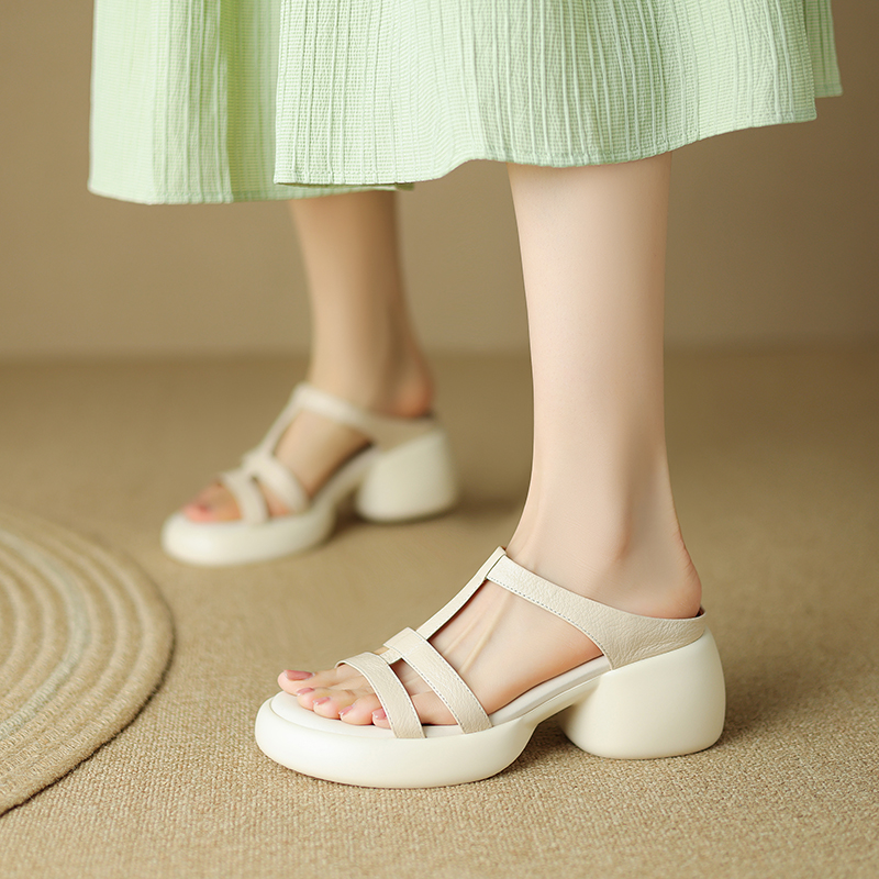 2022夏季凉拖鞋休闲鞋女鞋子拖鞋欧美英伦时尚粗跟