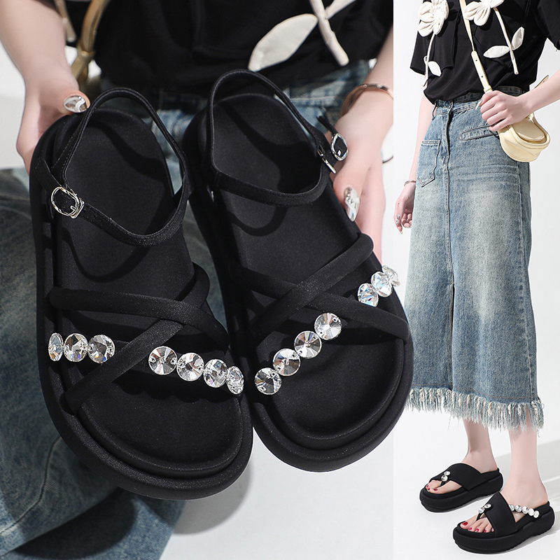 2022夏季凉拖鞋休闲鞋女鞋子拖鞋欧美英伦时尚松糕鞋