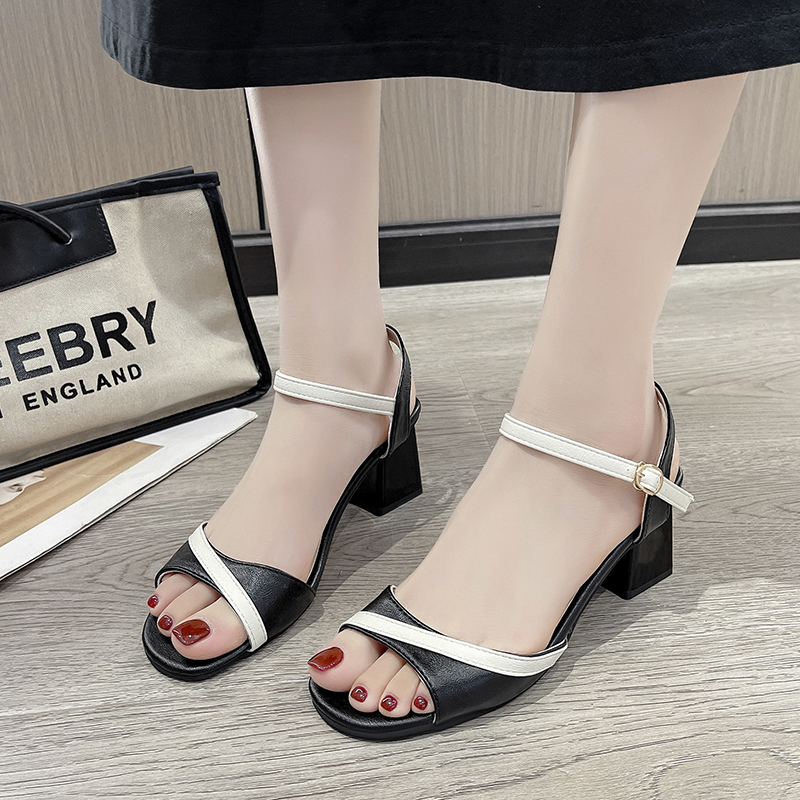2022夏季凉鞋休闲鞋女鞋子凉鞋韩版时尚潮沙滩鞋露趾粗跟