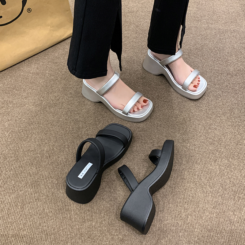 2022夏季凉拖鞋休闲鞋女鞋子拖鞋欧美英伦时尚松糕鞋