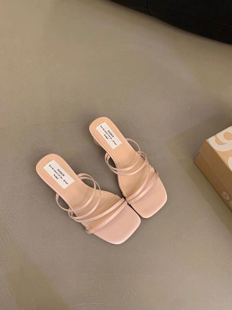 2022夏季凉拖鞋休闲鞋女鞋子拖鞋欧美英伦时尚粗跟