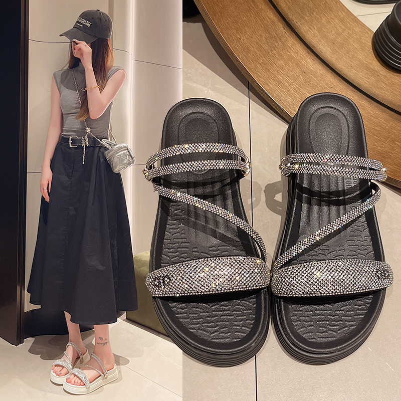 2022夏季凉拖鞋休闲鞋女鞋子拖鞋欧美英伦时尚松糕鞋