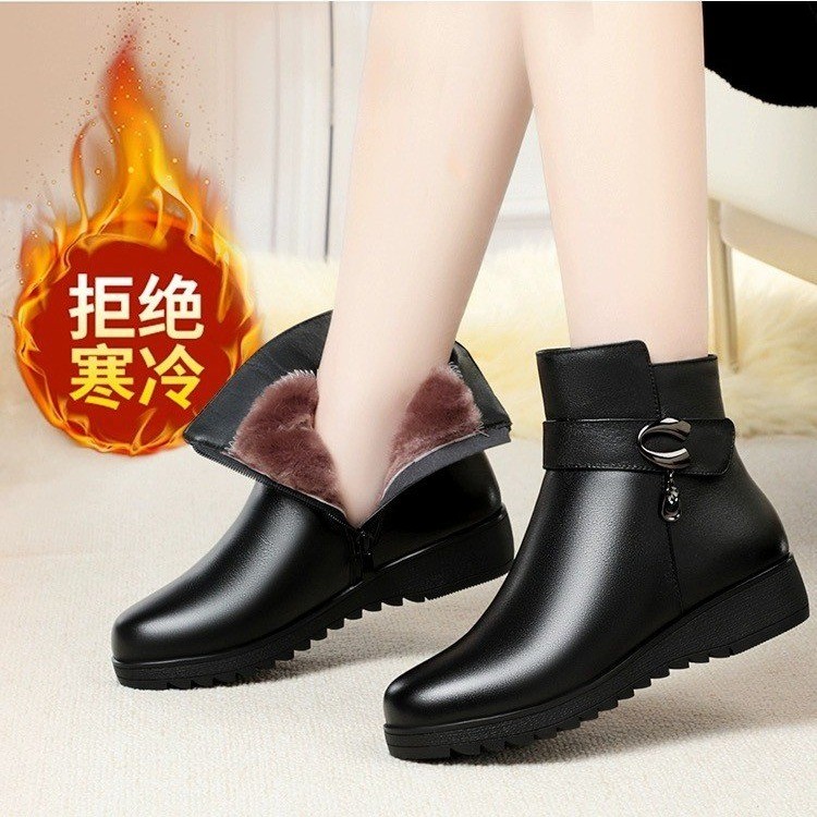 女靴子靴子韩版潮时尚保暖防滑短靴圆头粗跟