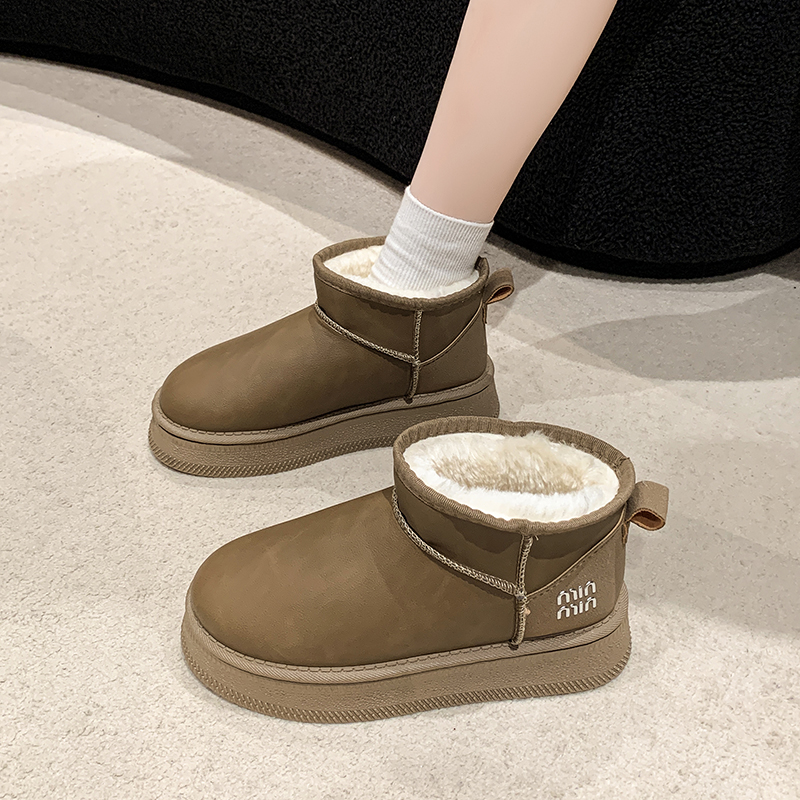 女靴子靴子韩版潮时尚保暖防滑绒面短靴圆头