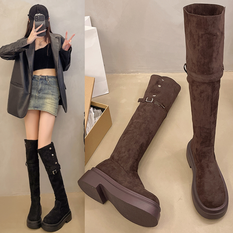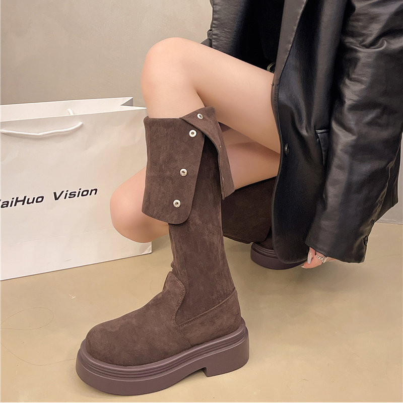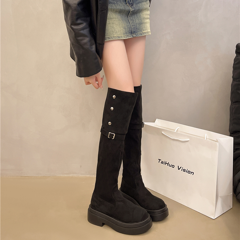 女靴子靴子韩版潮时尚保暖防滑长靴圆头粗跟