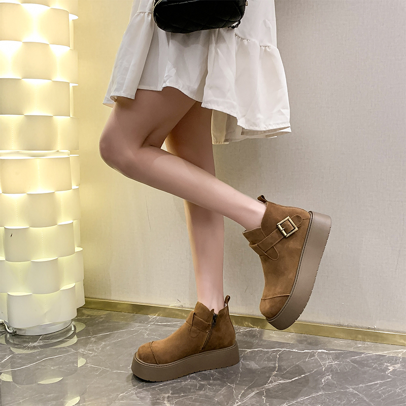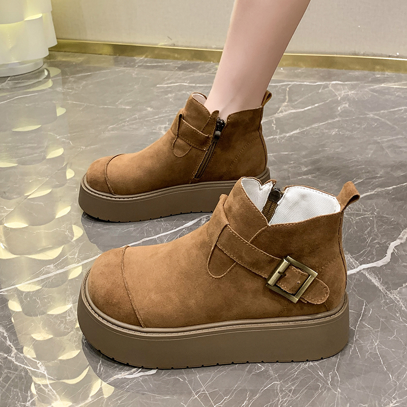 女靴子靴子韩版潮时尚保暖防滑短靴圆头粗跟