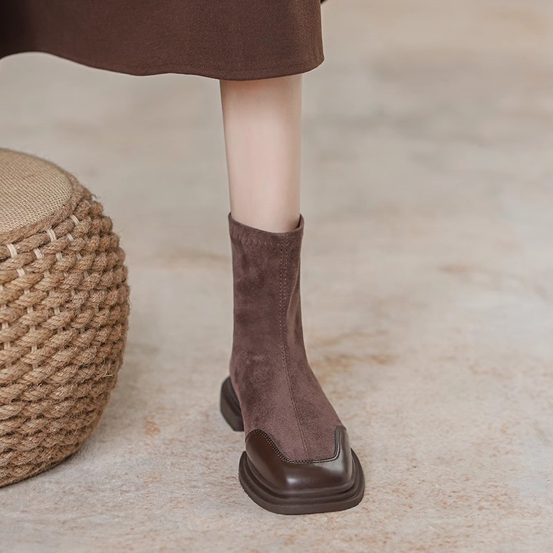 女靴子靴子韩版潮时尚保暖防滑短靴圆头粗跟
