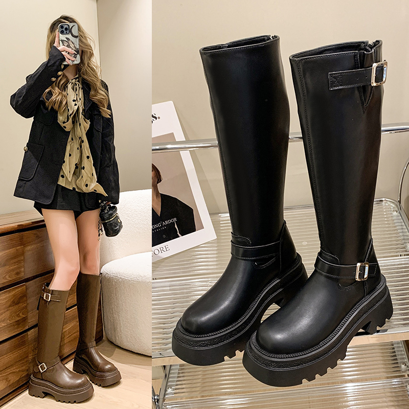 女靴子靴子韩版潮时尚保暖防滑长靴圆头粗跟