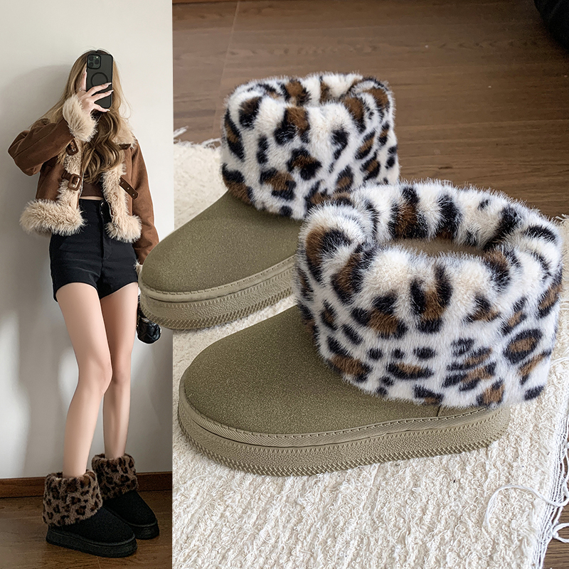 女靴子靴子韩版潮时尚保暖防滑绒面短靴圆头